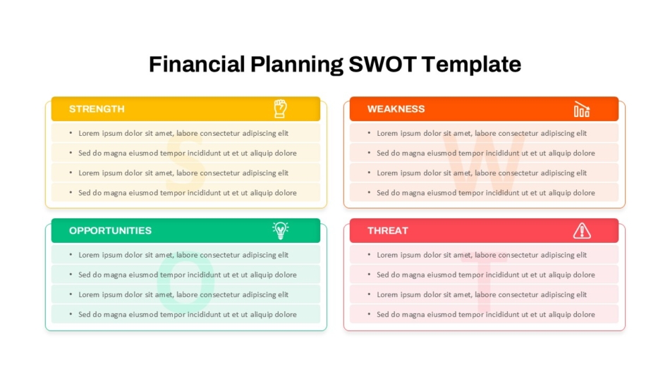 SWOT analysis template examples for business, marketing, and startups with editable slides for PowerPoint and Google Slides presentations