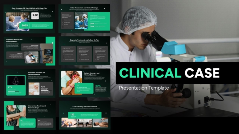 This Clinical Case Study Medical Presentation Template for Healthcare Slides features a cohesive design that integrates data visualization, medical imagery, and content sections tailored for case-based storytelling. Each slide is carefully crafted to support logical flow—from case overview and clinical findings to diagnosis, treatment, and follow-up analysis. The template helps streamline presentations while maintaining a professional tone, making it ideal for hospital presentations, medical conferences, and academic discussions. By using this Clinical Case Study Medical Presentation Template for Healthcare Slides, users can enhance clarity, improve audience engagement, and present critical healthcare insights with confidence.