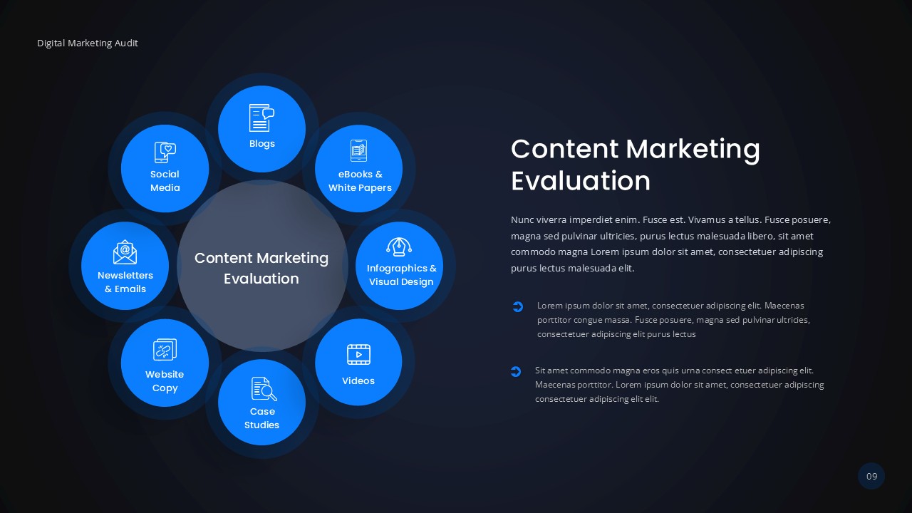 Content Marketing Evaluation Digital Marketing Audit Template PPT and Google Slides