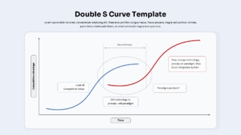 This Double S Curve Template is perfect for presentations on strategic management, innovation lifecycle, technological disruption, and change leadership. Its clear and minimalist design ensures your key ideas stand out, while editable text boxes allow you to highlight moments of stagnation, paradigm shifts, or opportunities for reinvention.