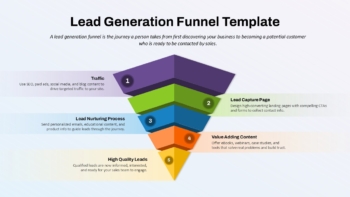 Designed for marketing teams and business strategists, this layout effectively illustrates the narrowing flow from general audience acquisition to qualified sales-ready prospects. The side-by-side structure aligns each funnel stage with its corresponding definition, helping audiences quickly grasp the value of each step. Fully editable in PowerPoint and Google Slides, this slide allows seamless customization—change colors, update text, or resize elements to suit your branding and presentation needs.