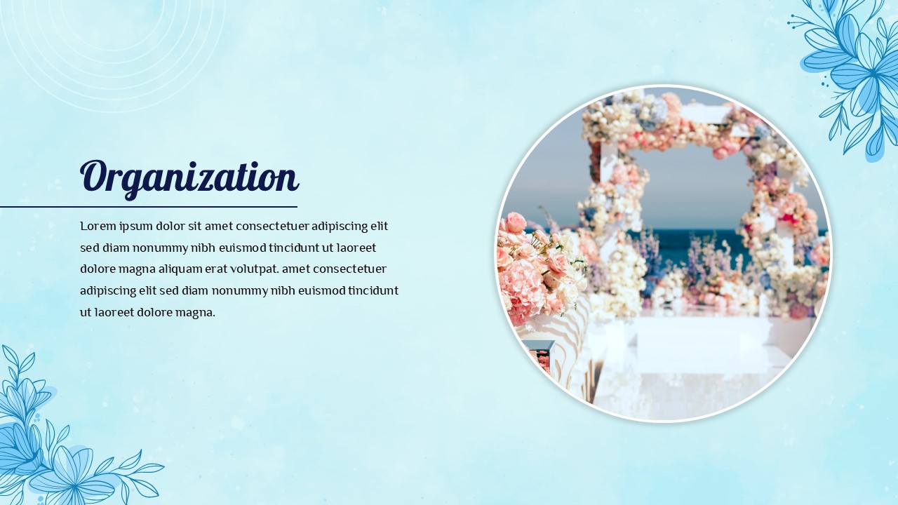 - Cover Slide: A beautiful floral wedding theme that sets the tone for the presentation.