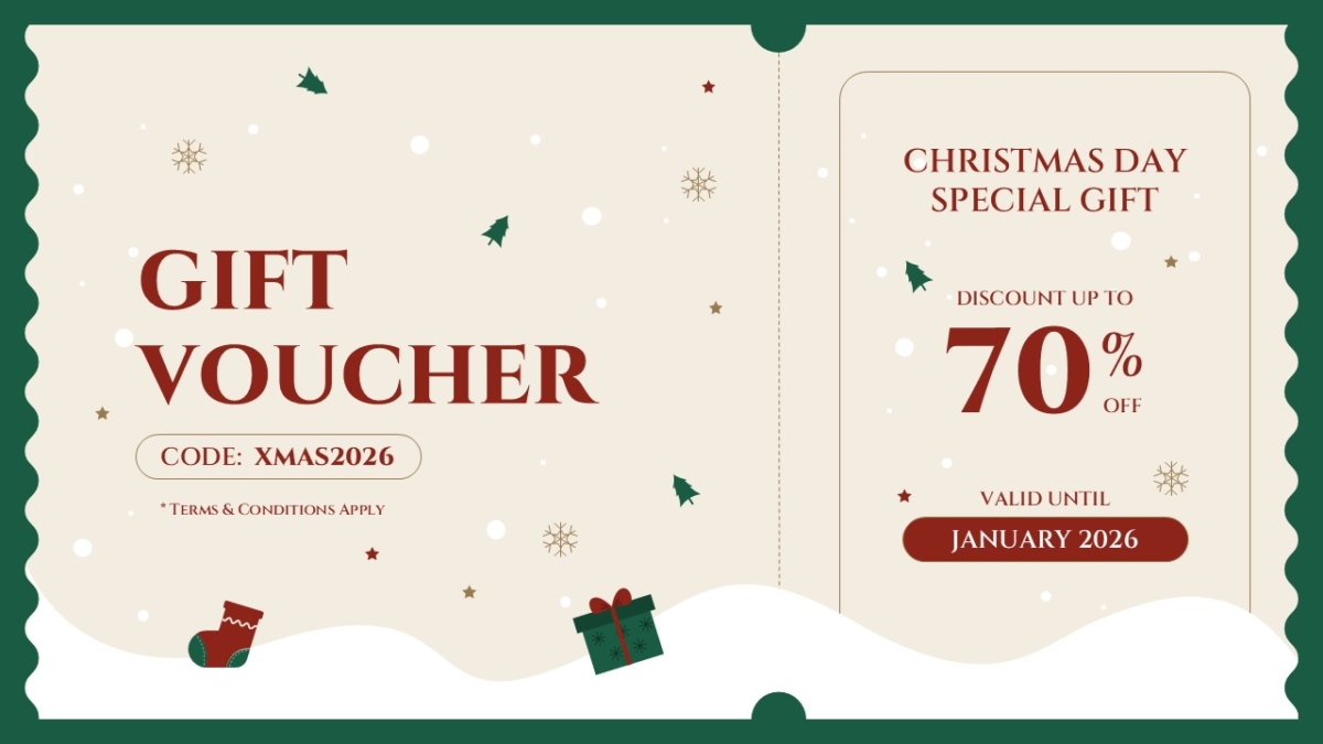 Beyond traditional gift vouchers, the template can also be used as a promotional slide within marketing presentations, holiday campaign proposals, or festive announcements. Its clean typography and organized structure ensure that your message remains the focal point, helping you communicate value and urgency effectively during the busy holiday season.
