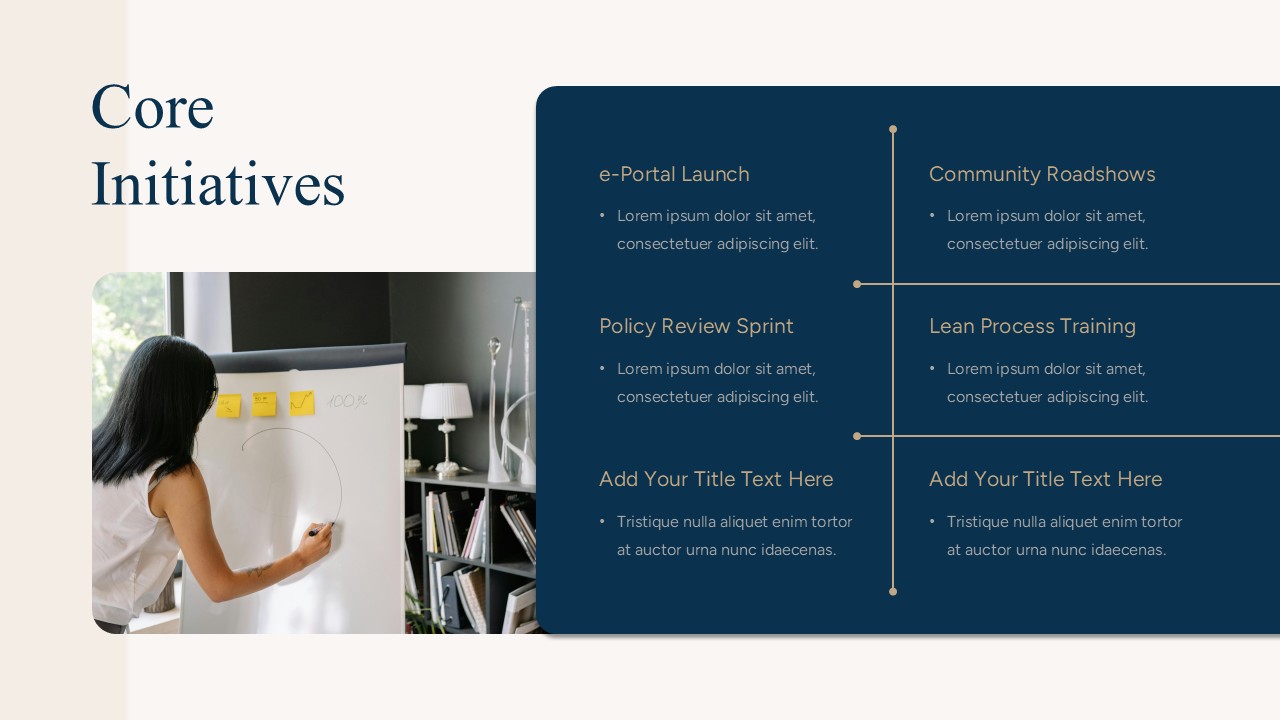 This presentation framework is suitable for government departments, ministries, public sector corporations, and councils that require a consistent method to present strategies. It also works for inter-agency teams that manage collaborative projects, ensuring that all participants follow the same structure when reporting plans and progress.