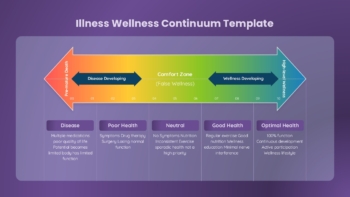 Whether you’re discussing preventive healthcare, lifestyle interventions, patient education, or health coaching strategies, this template provides a powerful visual aid to communicate the continuous nature of wellness. Its clean layout and intuitive design make it easy to customize and integrate into any health or education-related presentation.