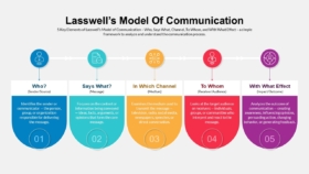 The Lasswell’s Model of Communication Diagram Template is a professionally designed visual resource that simplifies one of the most foundational frameworks in communication studies. Built around Harold D. Lasswell’s classic five-step model—Who, Says What, In Which Channel, To Whom, and With What Effect—this template offers a clear and structured way to explain how communication flows from sender to audience and results in measurable outcomes.