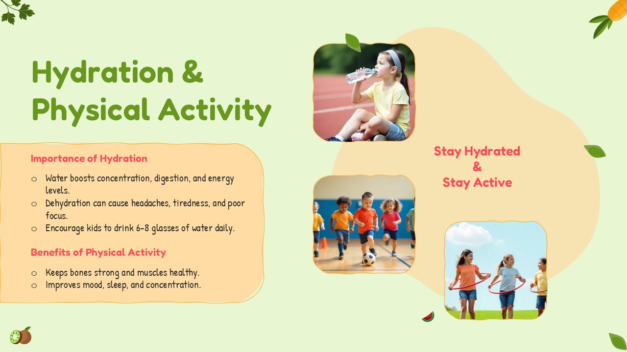 This healthy eating template is fully customizable in PowerPoint and Google Slides, allowing users to tailor content to suit different audiences, from school health programs and parenting workshops to pediatric nutrition seminars.