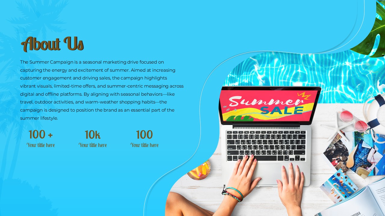 The template helps in campaign planning, execution, and reporting. Teams can present marketing strategies, pitch summer offers, or share outcomes with stakeholders. It also fits academic projects, workshops, and client presentations.
